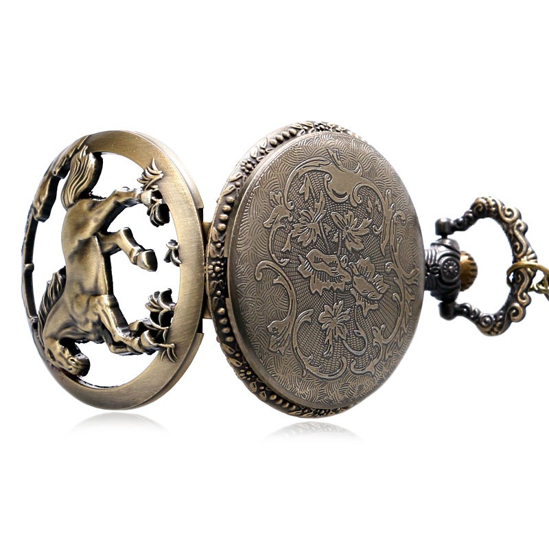 Luxusné vreckové hodinky v brondzovom dizajne s koníkom