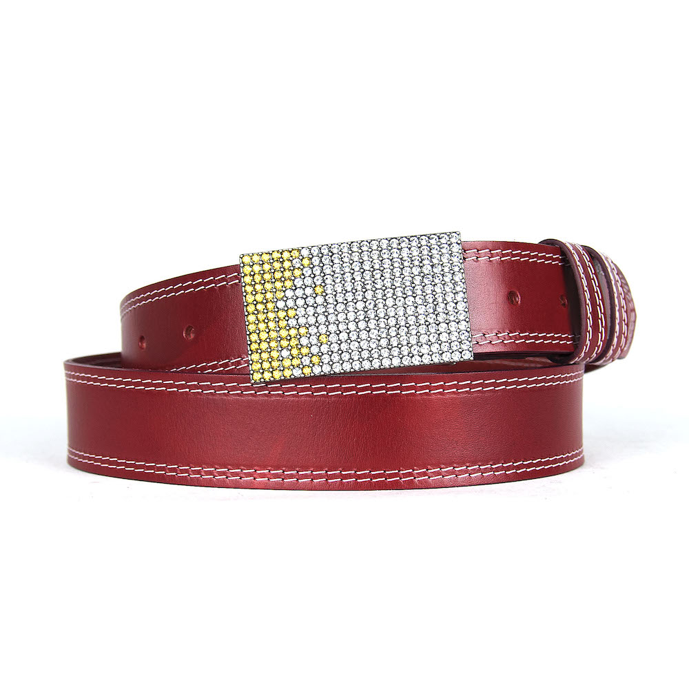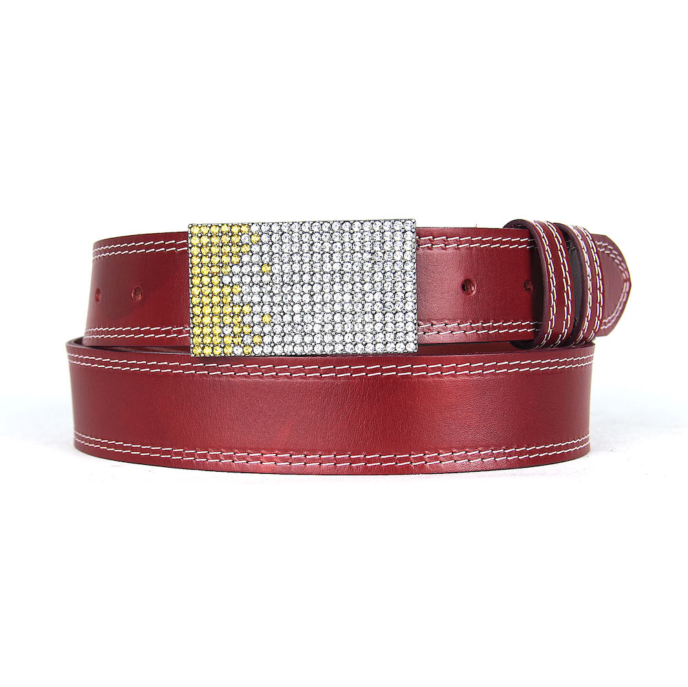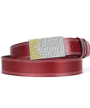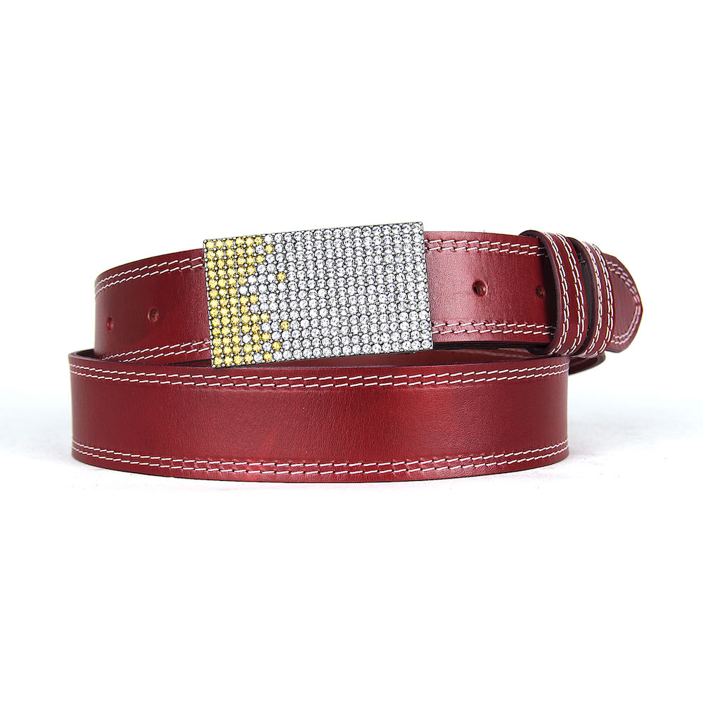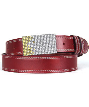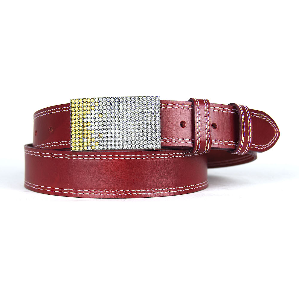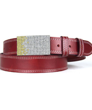 Limitovaná edícia – Opasok z pravej kože so Swarovski kreatívnou prackou. Nová, masívna kovová pracka s originál Swarovski sklíčkami v ligotavom odtieňi, ku ktorému je zľadený aj samotný remeň.