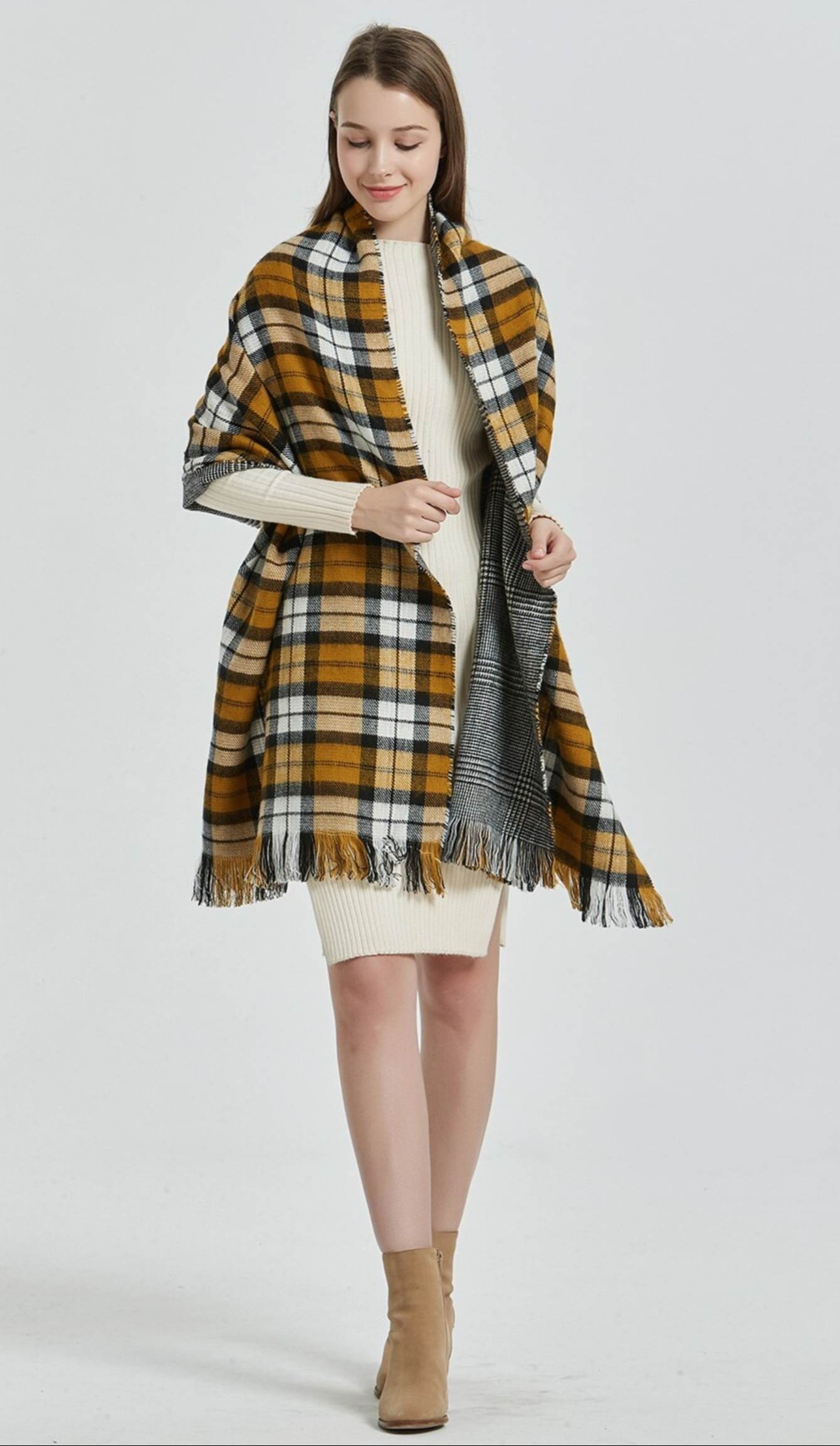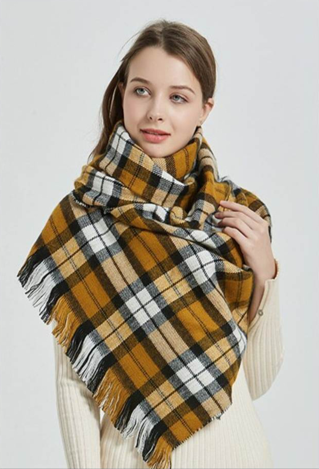 Luxusný dámsky zimný šál s moderným žltým vzorom