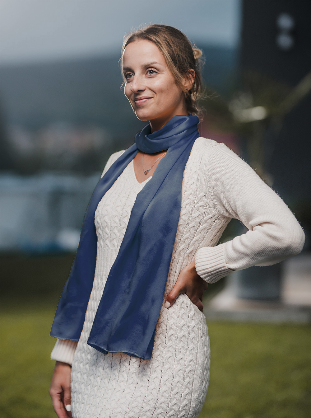 -klasický šál okolo krku – vďaka vlastnostiam hodvábu je vhodné nosenie celoročne