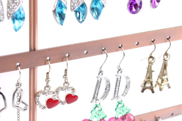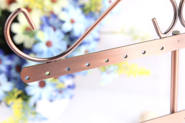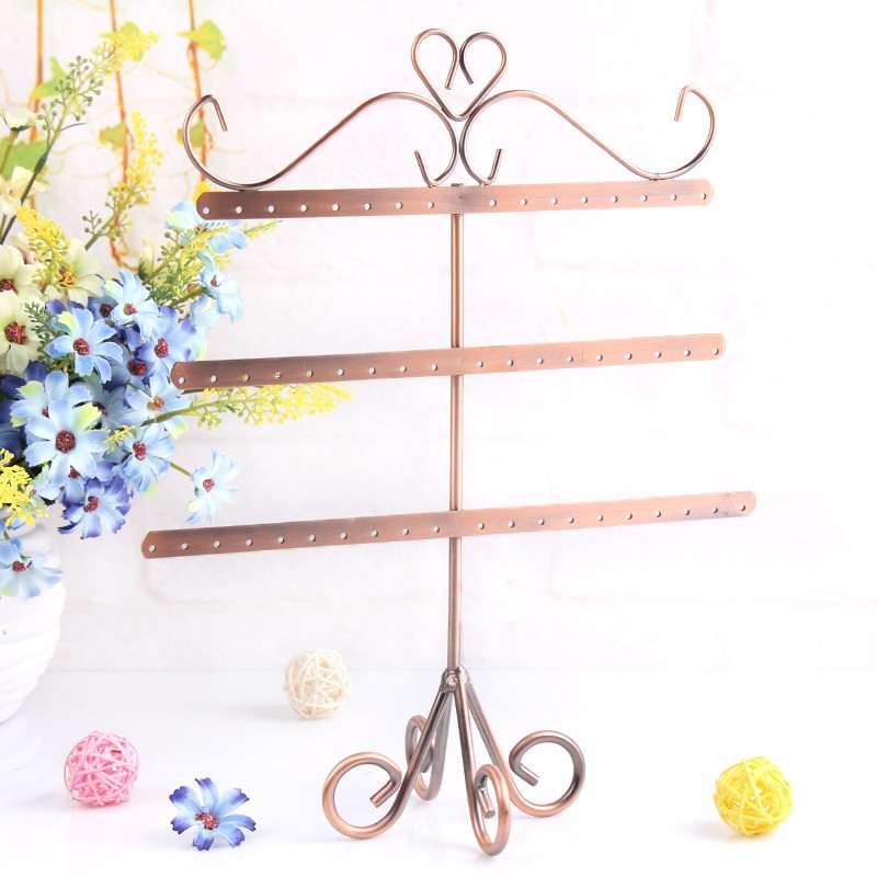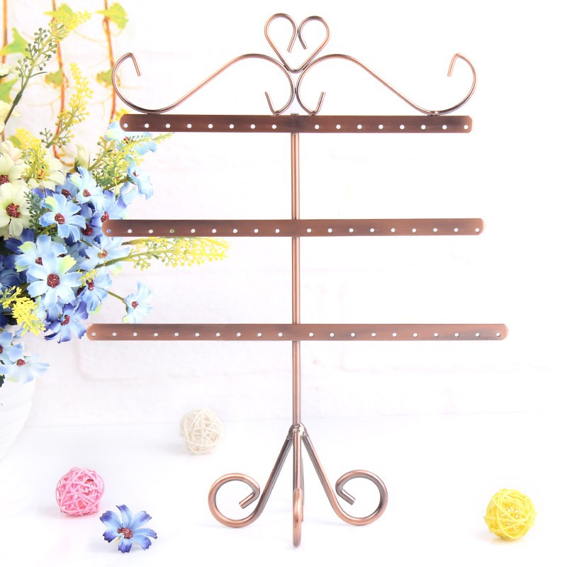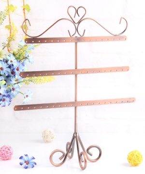 Luxusný kovový stojan na náušnice v retro dizajne. Vysokokvalitný kovový stojan na náušnice v retro dizajne vyrobený z kvalitného kovu. Stojan slúži zároveň ako dekorácie v domácnosti. Stojan sa skladá z troch priečok, ktoré slúžia na zavesenie náušníc. Je vhodný predovšetkým na zavesenie náušníc. Tento ozdobný stojan na náušnice je vhodný pre každú ženu, ktorá ma veľkú zbierku náušníc a praje si ich uložiť trvalo a pekne usporiadané.