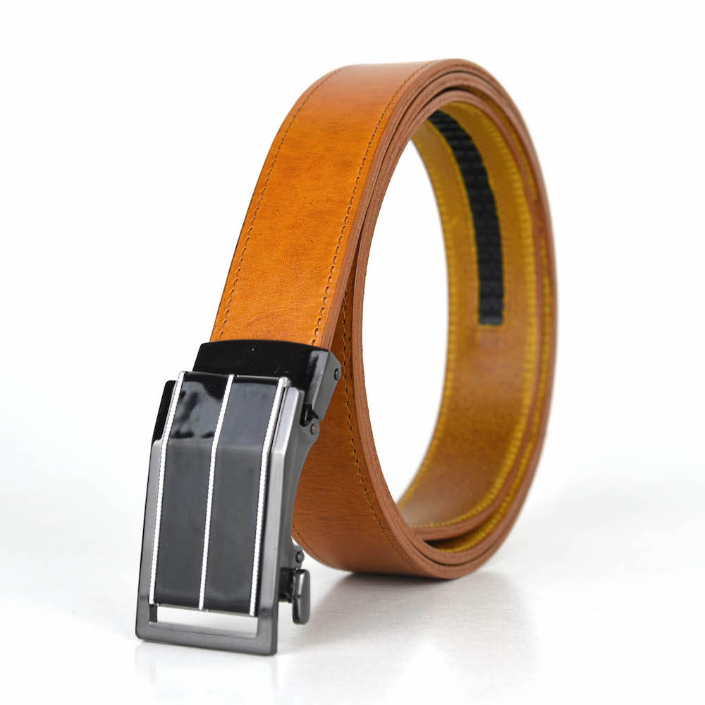 Opasky z pravej kože s automatickou prackou. Luxusné kožené opasky sú vyrobené z pravej talianskej kože. Automatická nadčasová pracka zaručí obdiv a prestíž. Pracka sa automaticky zapína pomocou dlhej roletky na vnútornej strane opasku. Je možné nastavovať si dĺžku podľa svojich požiadaviek. Kožené opasky sú vhodné pre biznismenov a mladých ľudí. Naše opasky sú vybavené prakticky nezničiteľným, skrytým track systémom s viac než 20 + dimenzovanými bodmi, takže si môžete upraviť svoj opasok pre dokonalé prispôsobenie Vášmu pásu. Všetky naše kožené opasky s automatickou prackou na opasok používajú jednoduchý, pružinou kalibrovaný mechanizmus alebo mechanizmus založený na magnete pre dokonalé zaistenie pracky s track systémom.