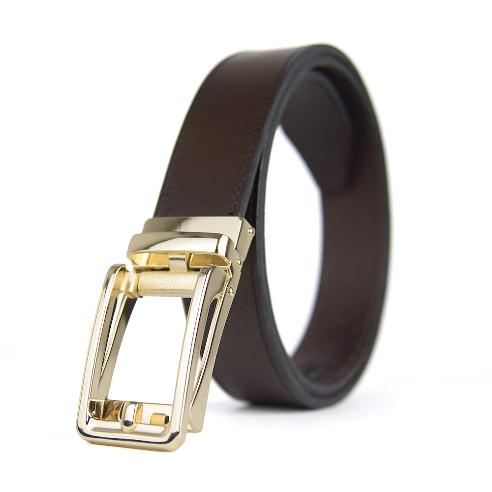 Opasky z pravej kože s automatickou prackou. Luxusné kožené opasky sú vyrobené z pravej talianskej kože. Automatická nadčasová pracka zaručí obdiv a prestíž. Pracka sa automaticky zapína pomocou dlhej roletky na vnútornej strane opasku. Je možné nastavovať si dĺžku podľa svojich požiadaviek. Kožené opasky sú vhodné pre biznismenov a mladých ľudí. Naše opasky sú vybavené prakticky nezničiteľným, skrytým track systémom s viac než 20 + dimenzovanými bodmi, takže si môžete upraviť svoj opasok pre dokonalé prispôsobenie Vášmu pásu. Všetky naše kožené opasky s automatickou prackou na opasok používajú jednoduchý, pružinou kalibrovaný mechanizmus alebo mechanizmus založený na magnete pre dokonalé zaistenie pracky s track systémom.