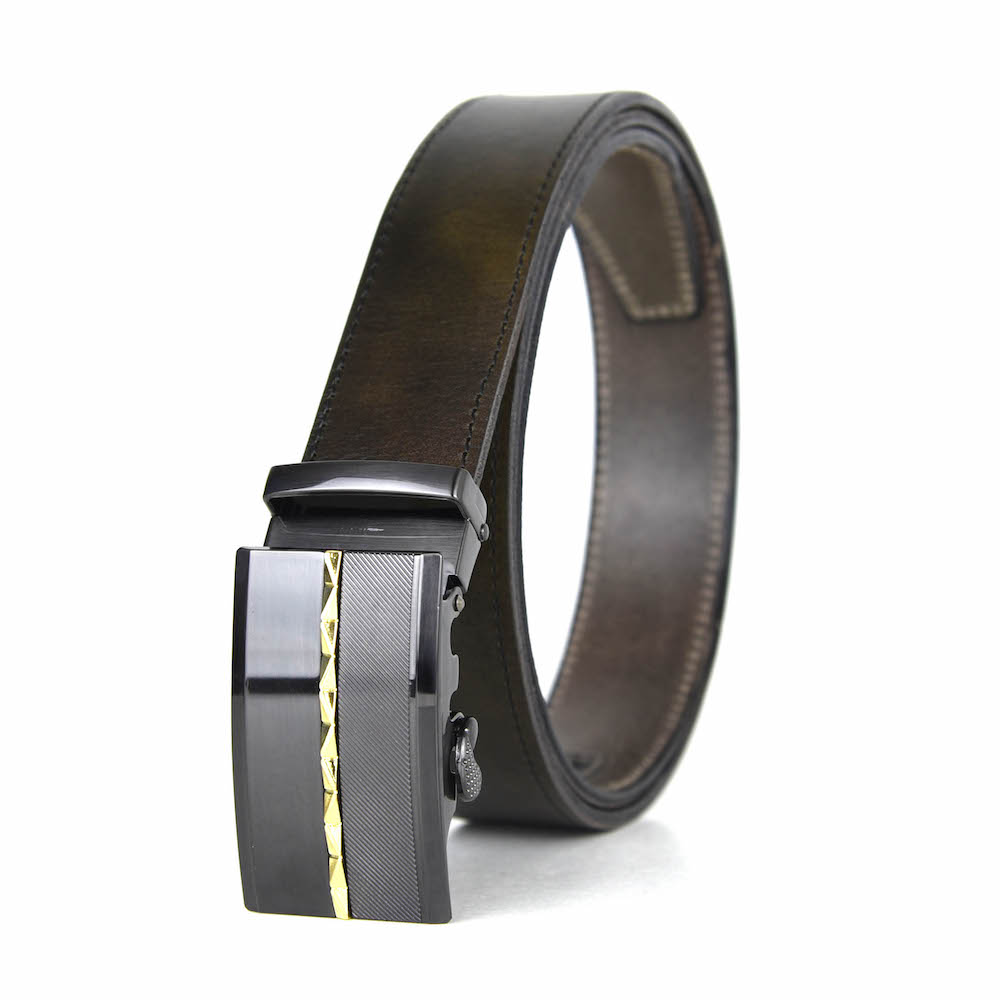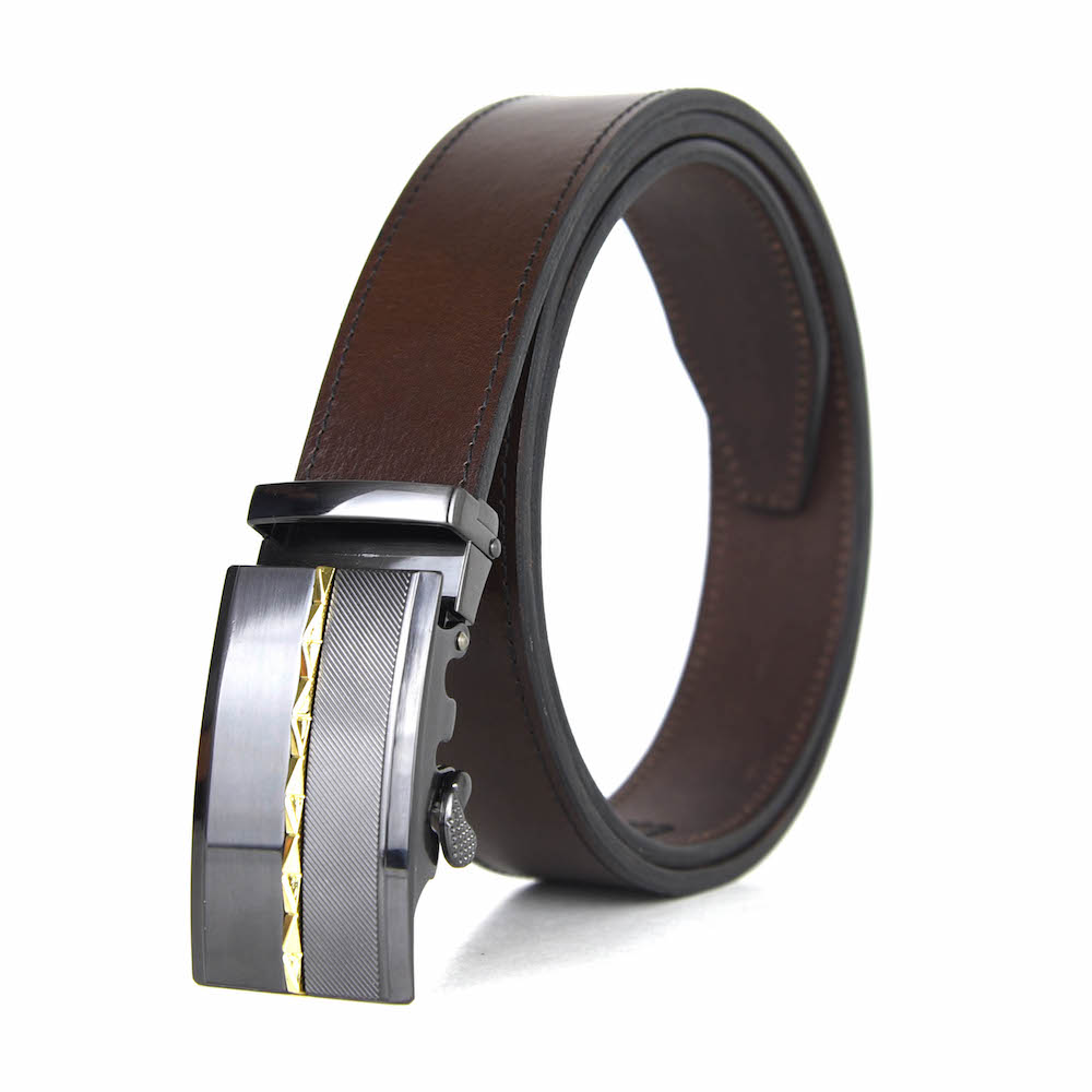 Opasky z pravej kože s automatickou prackou. Luxusné kožené opasky sú vyrobené z pravej talianskej kože. Automatická nadčasová pracka zaručí obdiv a prestíž. Pracka sa automaticky zapína pomocou dlhej roletky na vnútornej strane opasku. Je možné nastavovať si dĺžku podľa svojich požiadaviek. Kožené opasky sú vhodné pre biznismenov a mladých ľudí. Naše opasky sú vybavené prakticky nezničiteľným, skrytým track systémom s viac než 20 + dimenzovanými bodmi, takže si môžete upraviť svoj opasok pre dokonalé prispôsobenie Vášmu pásu. Všetky naše kožené opasky s automatickou prackou na opasok používajú jednoduchý, pružinou kalibrovaný mechanizmus alebo mechanizmus založený na magnete pre dokonalé zaistenie pracky s track systémom.