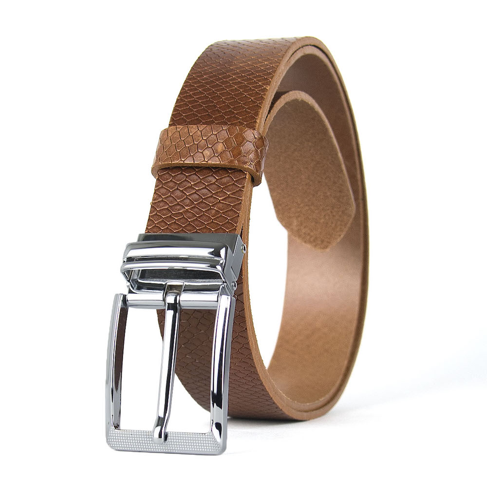 Kožený unisex opasok vyrobený z pravej talianskej dezénovej kože. Opasok má ručne brúsené a farbené hrany. Pravá prírodná koža a nadčasová pracka zaručí obdiv a prestíž. Pracka disponuje zúbkami na uchytenie remeňa. Je teda možné opasok rýchlo a jednoducho skrátiť. Meranie potrebnej dĺžky v páse merajte VŽDY v mieste, kde nosíte nohavice (rozdiel v páse a cez boky je značný). Šírka opaskov je 3.3 cm, hrúbka kože býva v rozsahu 3 – 4 mm.