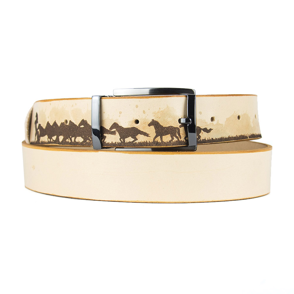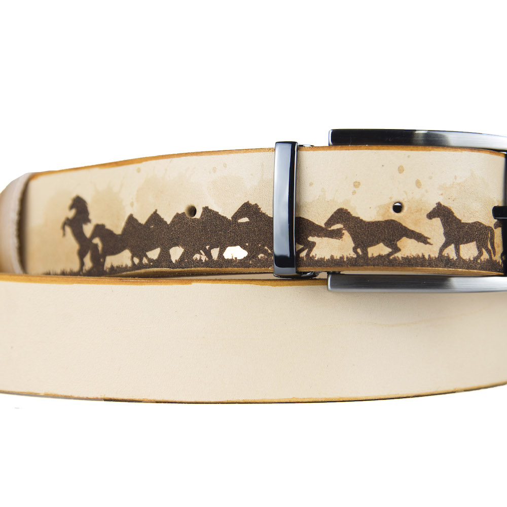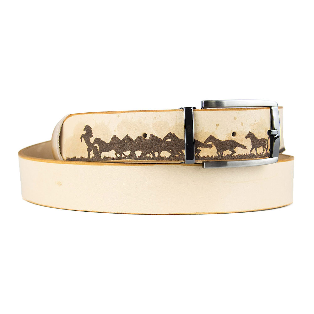 Luxusný maľovaný a gravírovaný kožený opasok vyrobený na Slovensku