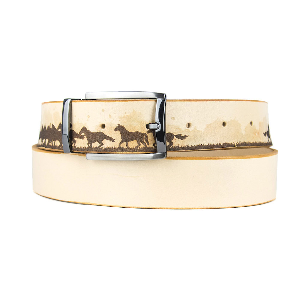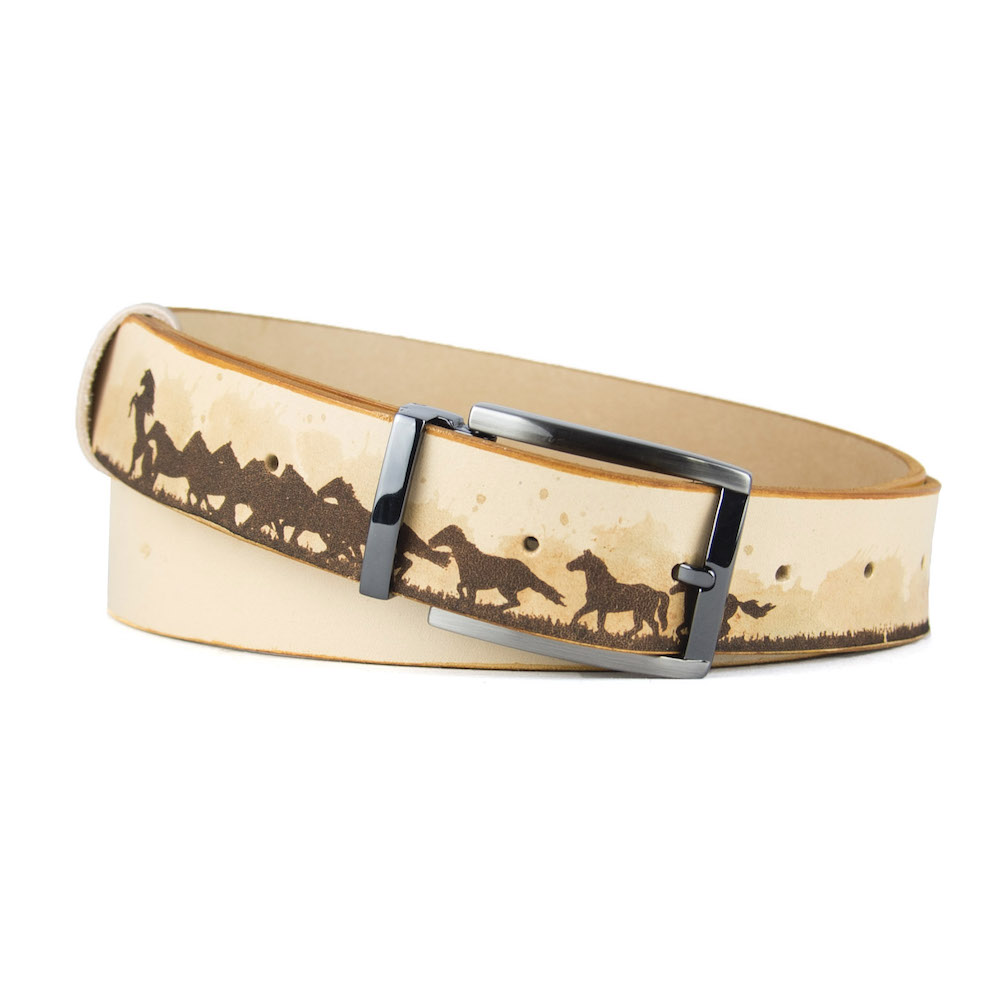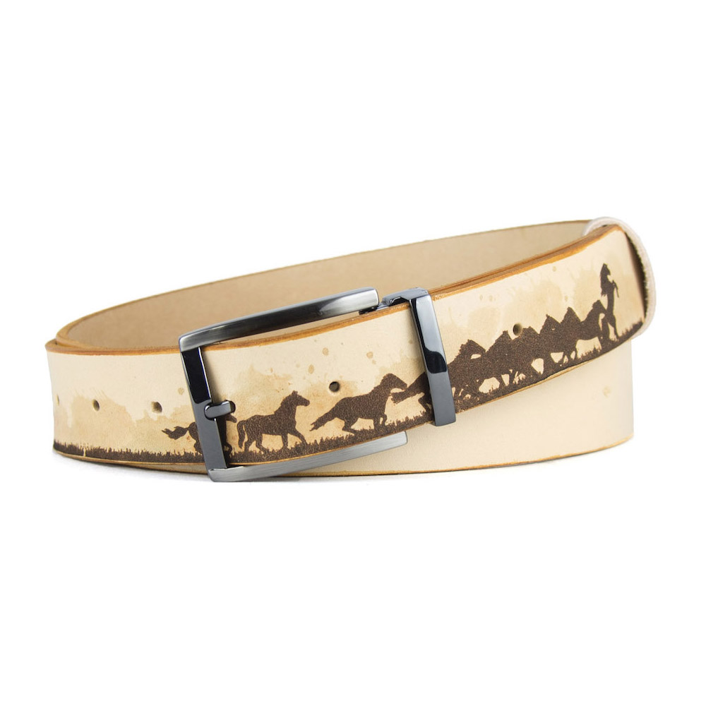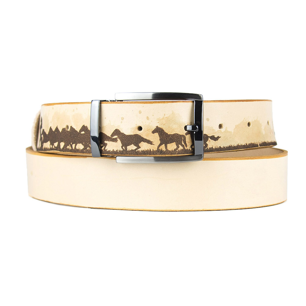 Luxusný maľovaný a gravírovaný kožený opasok vyrobený na Slovensku