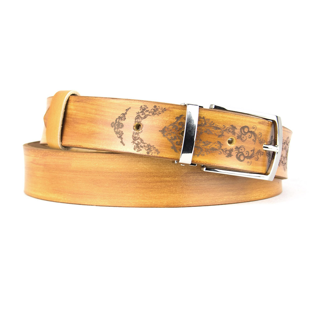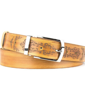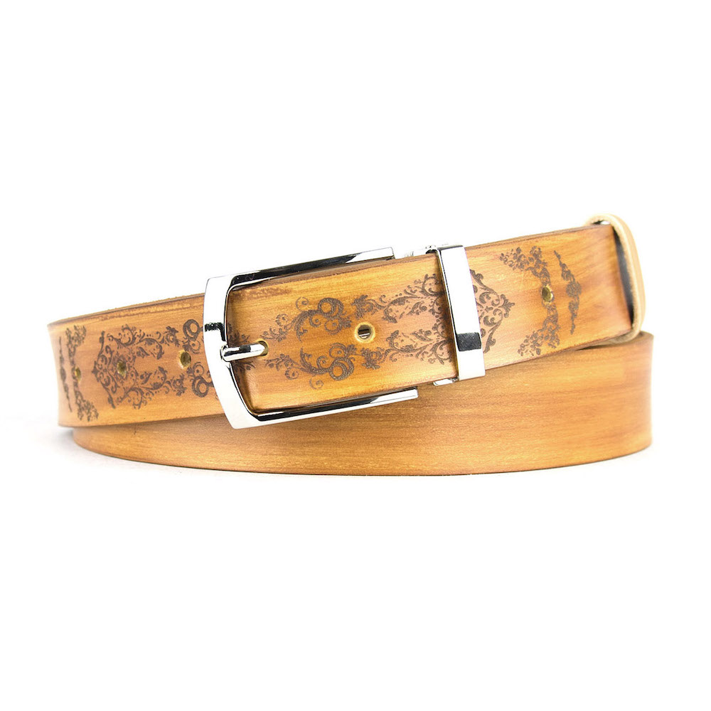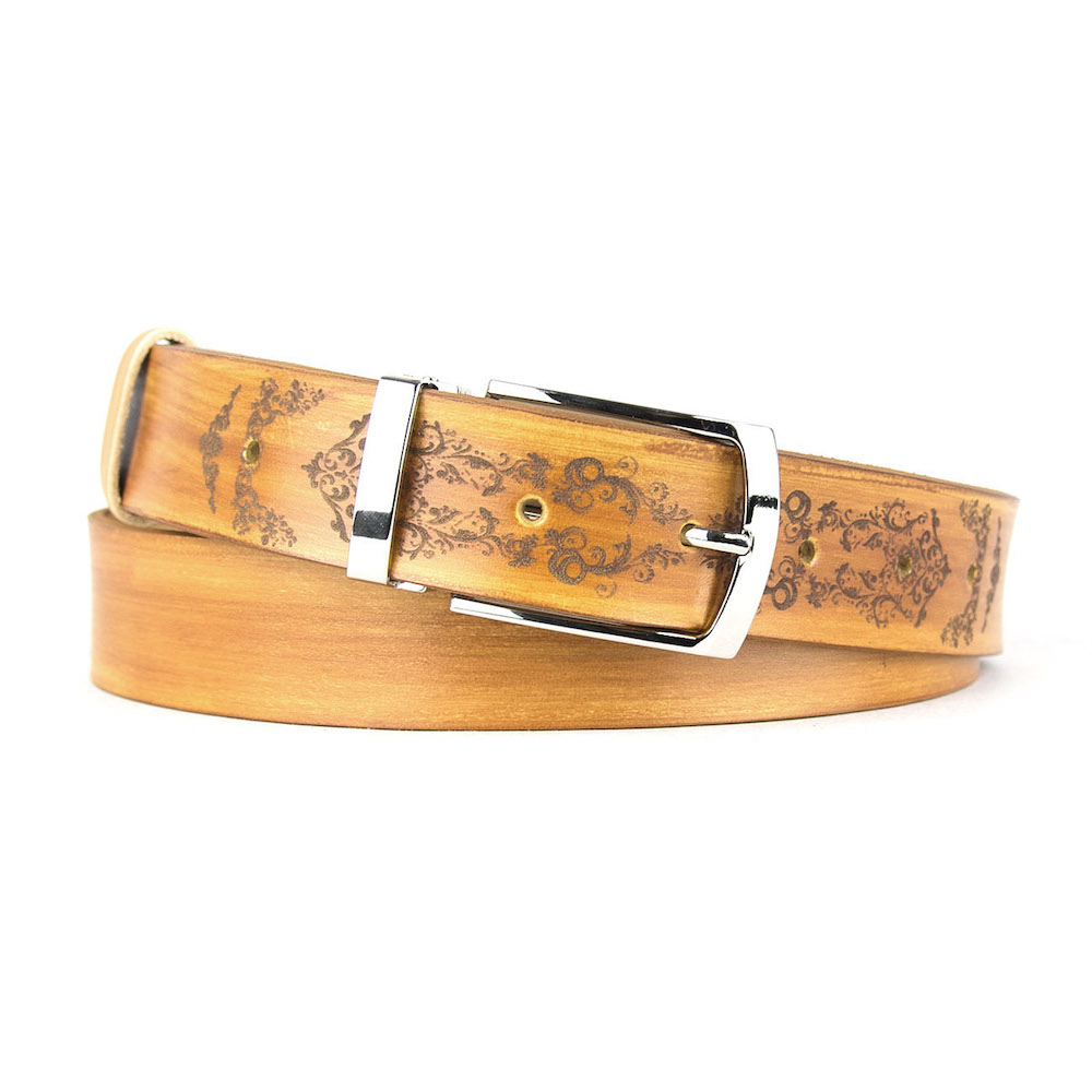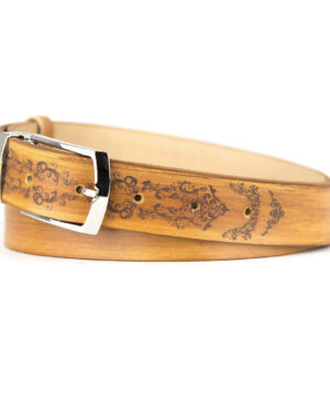 Luxusný maľovaný a gravírovaný kožený opasok vyrobený na Slovensku