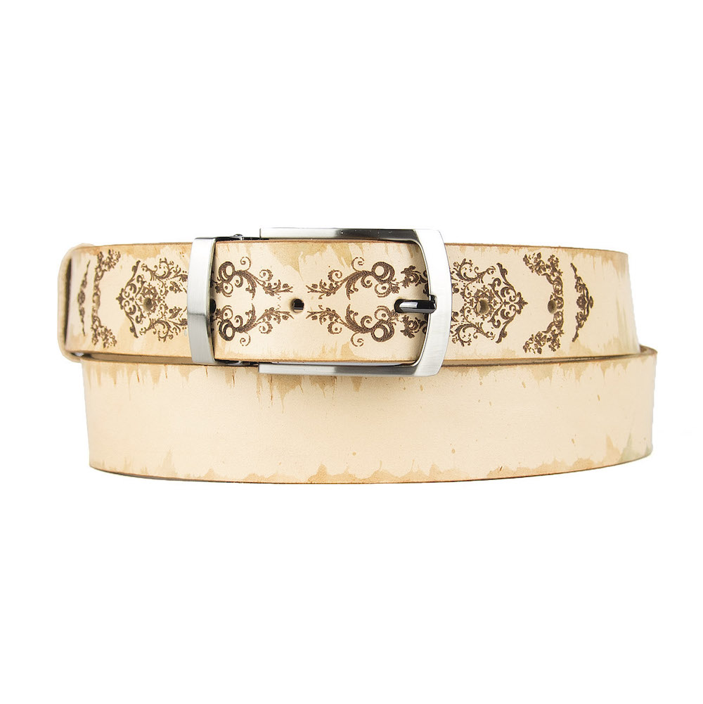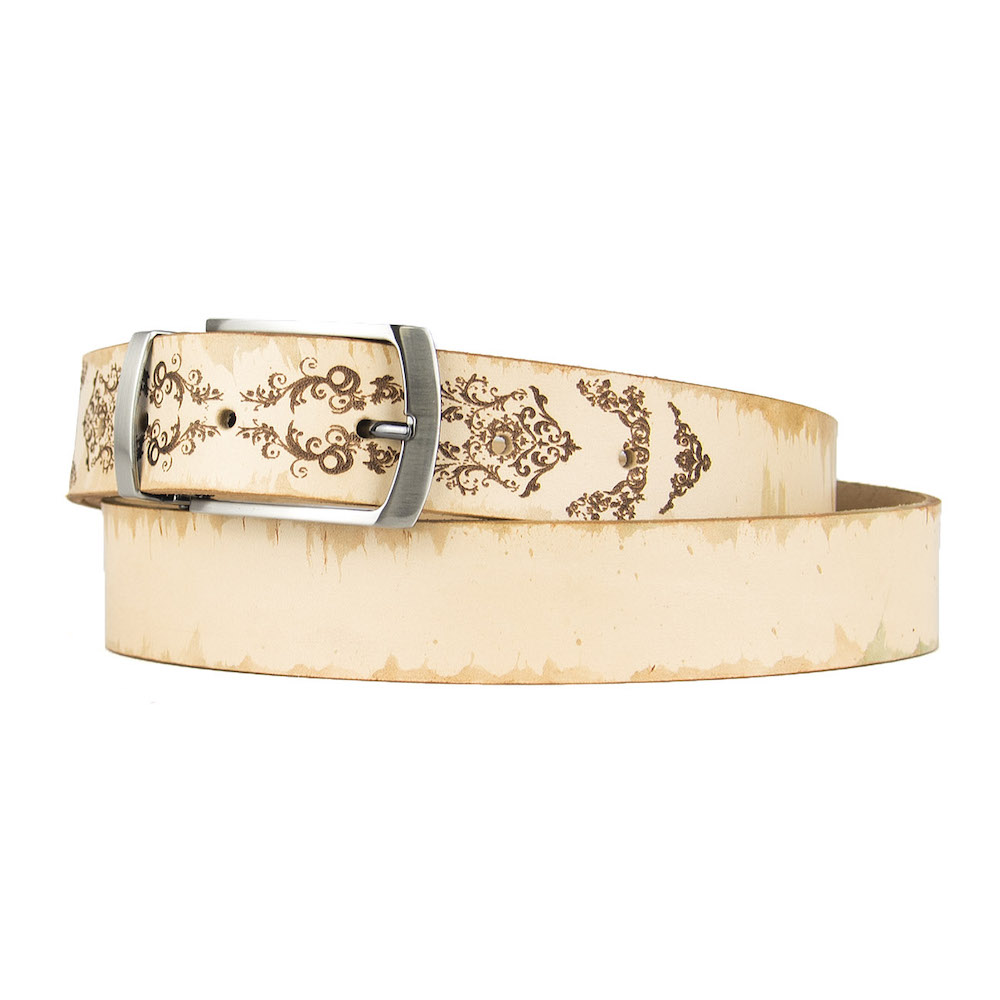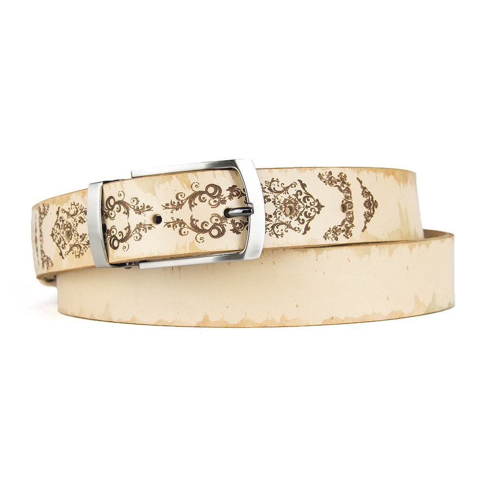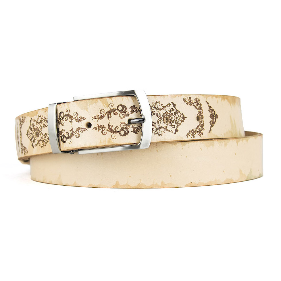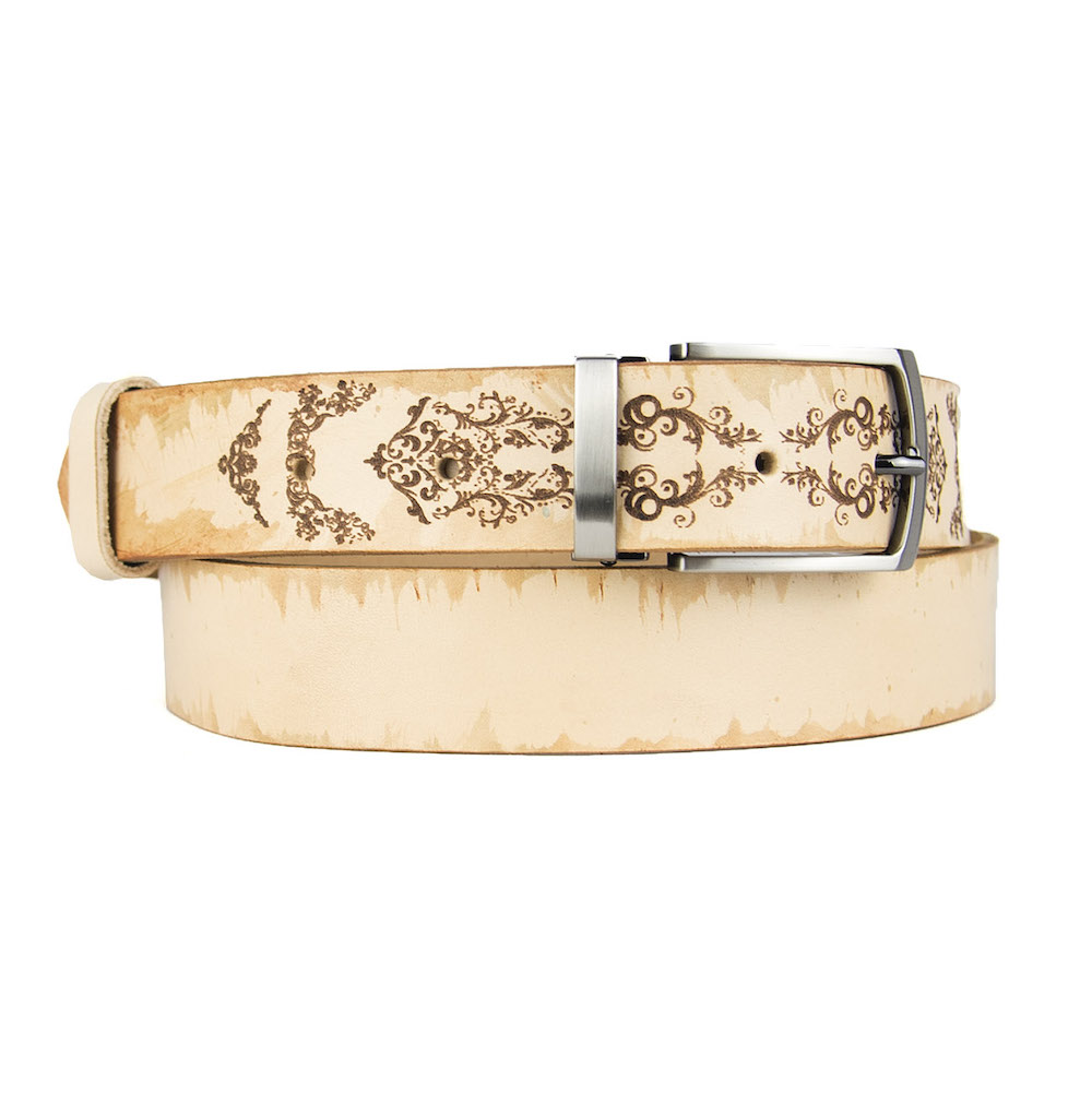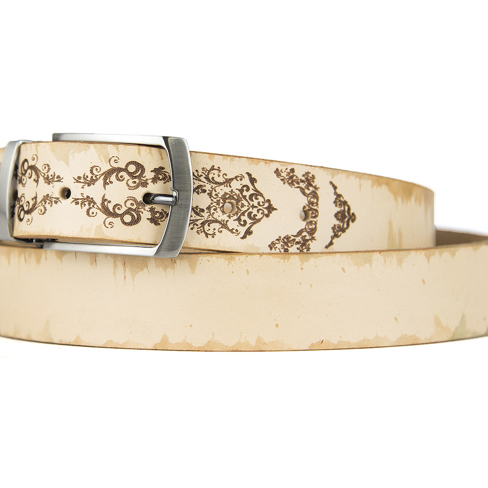 Luxusný maľovaný a gravírovaný kožený opasok vyrobený na Slovensku