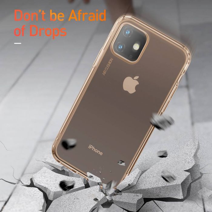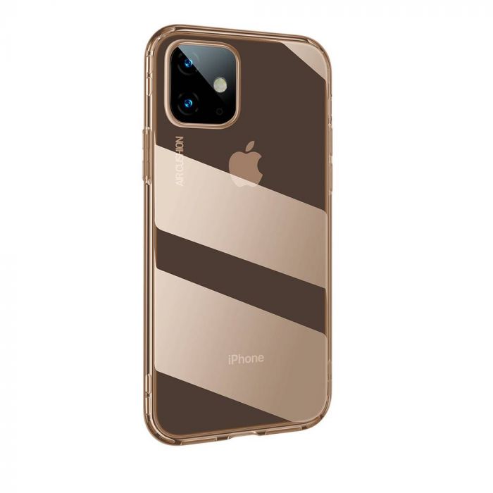 Ochranný silikónový obal pre iPhone 11, Safety Airbags v transparentnej zlatej farbe. Celobalený dizajn s oblúkovým okrajom, ktorý poskytuje všestrannú ochranu a pohodlný pocit v ruke, toto puzdro z silikónu sa pohodlne hodí k vášmu zariadeniu bez toho, aby pridávalo veľa objemu.