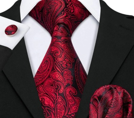 Luxusný set – kravata, manžety a vreckovka s bordovým vzorom