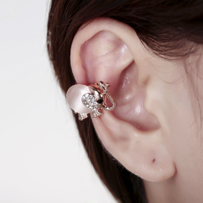 Luxusný ušný prstenec v tvare slona s opálom. Ušný prstenec sa po dlhých rokoch opäť stáva štýlovým doplnkom súčasnosti. Ak Vás už omrzeli klasické náušnice a chcete skúsiť nový vzhľad, ušný prstenec je tým pravým doplnkom pre Vás. Ušný prstenec spája tradičný dizajn a futurizmus a zároveň pritiahne oči každého zvedavca. Aplikácia je veľmi jednoduchá, pomocou prstencového úchytu. Už nemusíte deformovať svoje uši alebo ich znovu prepichovať. Ušný prstenec je aplikovateľný bez akýchkoľvek kozmetických zásahov.