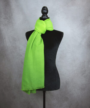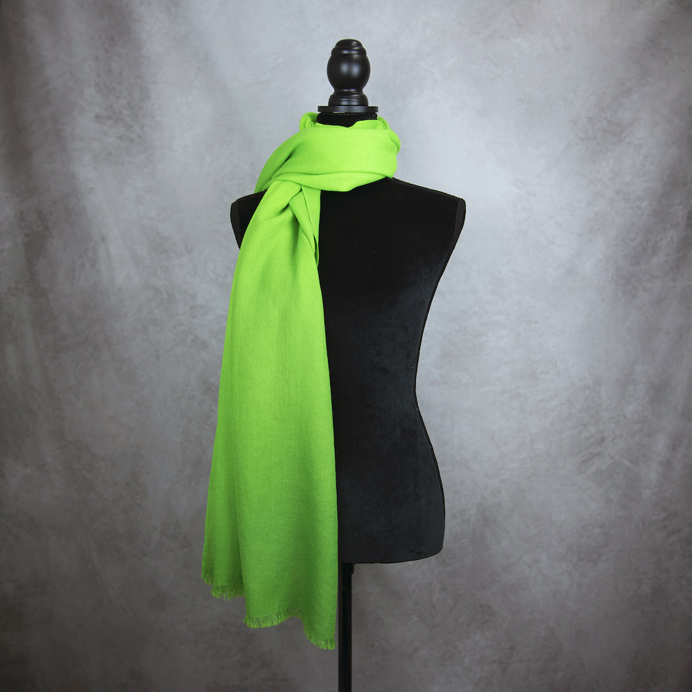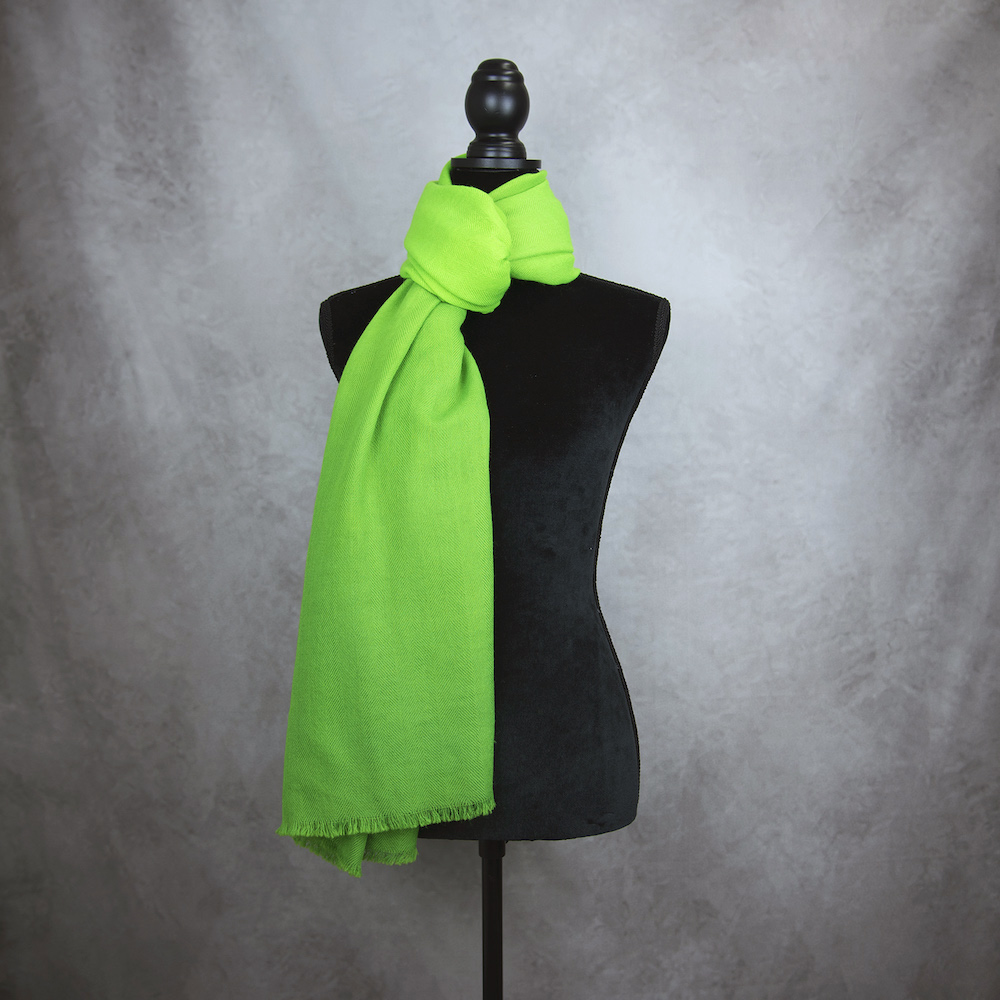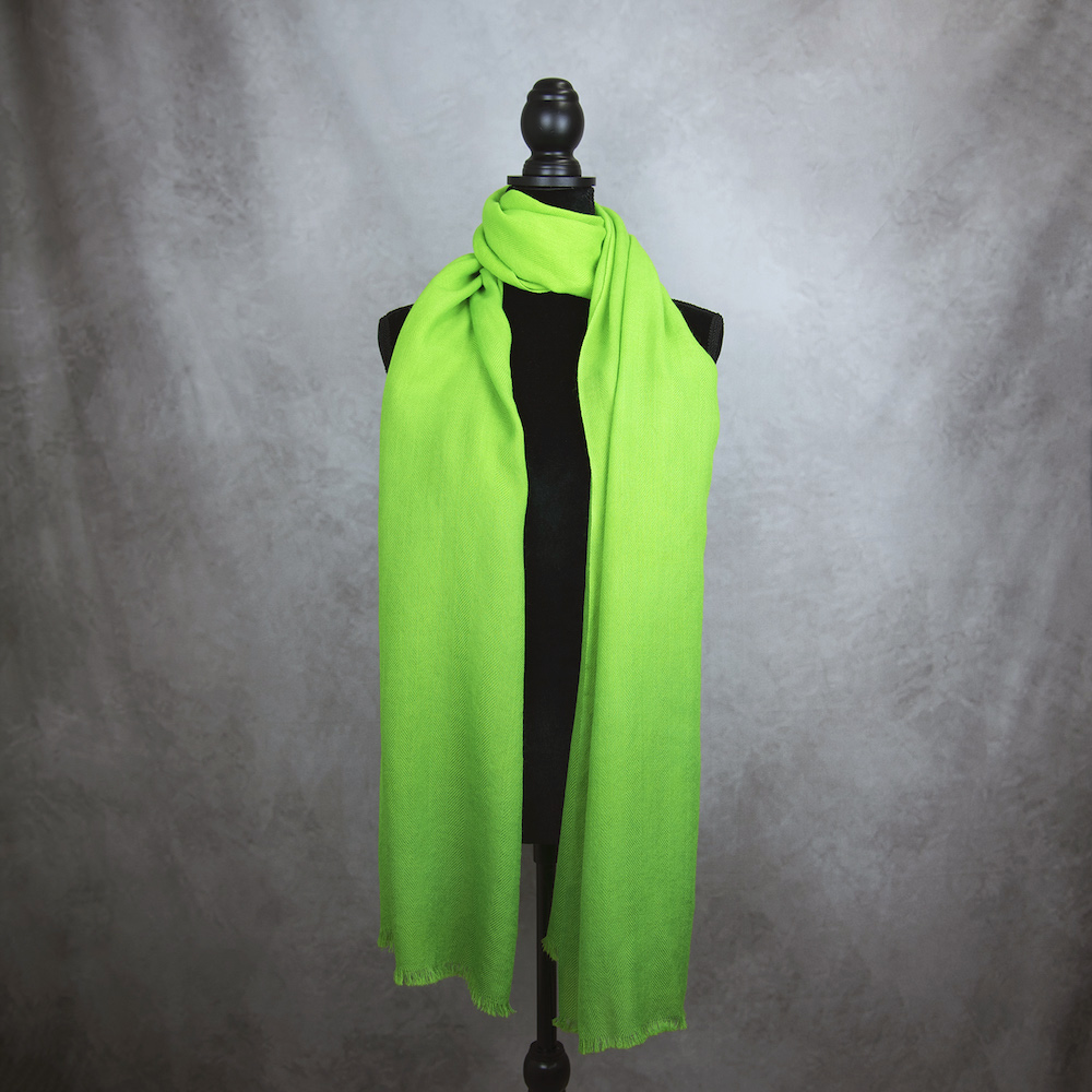 Šál je utkaný z prvotriednej Merino vlny. Má nepatrný úpletový vzor a na koncoch ho zdobia jemné krátke strapce. Merino vlna je na dotyk veľmi príjemná, nedráždi a neškriabe. Šál je farbený ručne prírodnými pigmentami určenými priamo na proteínové vlnené tkanivo. Živočíšny charakter vlny spôsobuje nerovnomerné a jedinečné sfarbenie ktoré sa môže javiť ako sýtejšie či bledšie miesta, fľaky. Pri bežnom nosení sú však nepatrné a šálu na jeho kvalite a žiarivých farbách neuberajú. Farby vďaka svojej kvalite a postupu ručného farbenia sú žiarivé, trvácne, UV odolné a teda neblednú pri dlhodobom nosení ani pri praní.