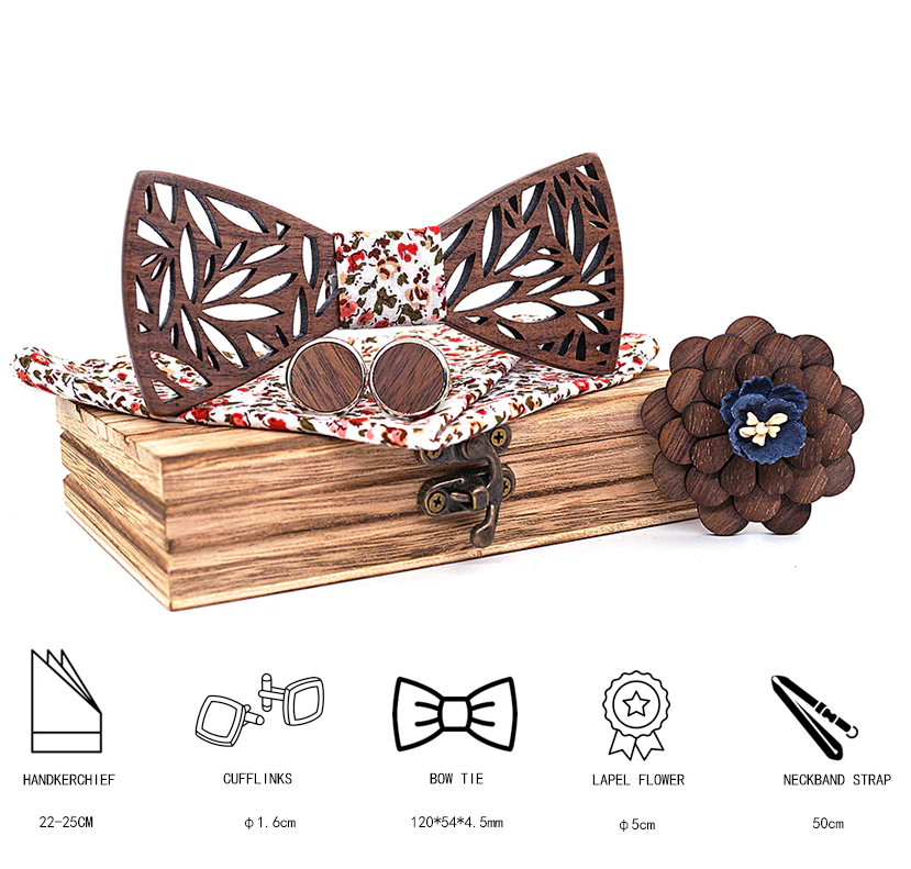 Drevený motýlik je moderným doplnkom pre každého muža. Reprezentuje váš štýl a spája eleganciu, extravaganciu a exkluzivitu. Ak chcete zapôsobiť a hľadáte hlavne niečo nové a neobyčajné tak náš drevený motýlik je tým správnym riešením. Motýlik je vyrobený z kvalitného dreva a tento typ motýlika disponuje originálnym a kreatívnym dizajnom, obsahuje aj prúžok z polyesteru. Môžete ho nosiť ku košeli, riflom a teniskám, do mesta na neformálne udalosti, rovnako ako k dokonalému obleku na biznis stretnutie ale aj na ples. Záleží len na vás, či ho budete nosiť elegantne alebo rebelsky. S motýlikom buďete jedinečný a výnimočný zároveň.