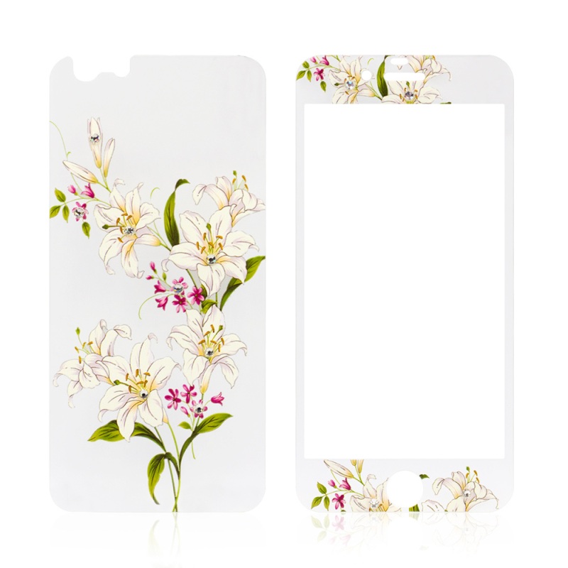 Ochranný dekoračný sklenený set pre iPhone 6 Plus/6S Plus so vzorom kytice pozostáva z predného ochranného sklad a zadného ochranného sklad pre iPhone 6 Plus/6S Plus. Jedná sa o tvrdené ochranné sklá, ktoré sú vhodné ako ochrana Vášho iPhone proti poškrabaniu a poškodeniu. Ochranné sklá obsahujú originálne kryštáliky, ktoré sú do skla ručne vkladané.