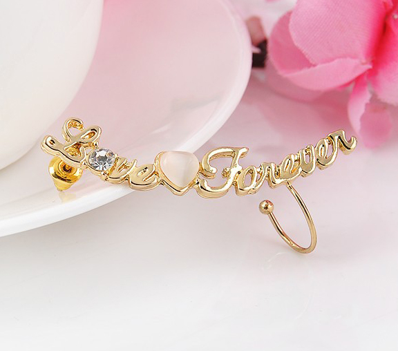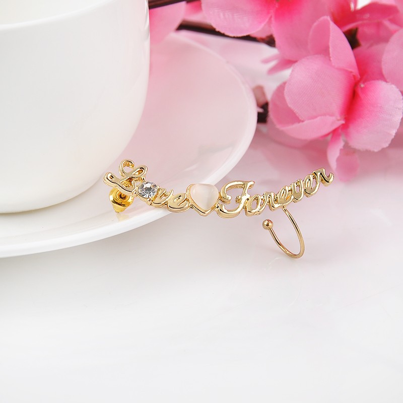 Piercing náušnica s nápisom LOVE FOREVER v zlate farbe. Tieto krásne a elegantné náušnice Vás uchvátia svojim žiarivým dizajnom, ktorý z nich robí prekrásny doplnok pre každú ženu. Náušnice sú v zlatej farbe a sú vhodné na formálne aj neformálne udalostí. Luxusný a kvalitný materiál, dodáva náušniciam prekrásny lesk a žiarivosť. Sú vyrobené z kvalitných zliatin materiálov. Potešte svoju milú týmto romantickým darčekom.