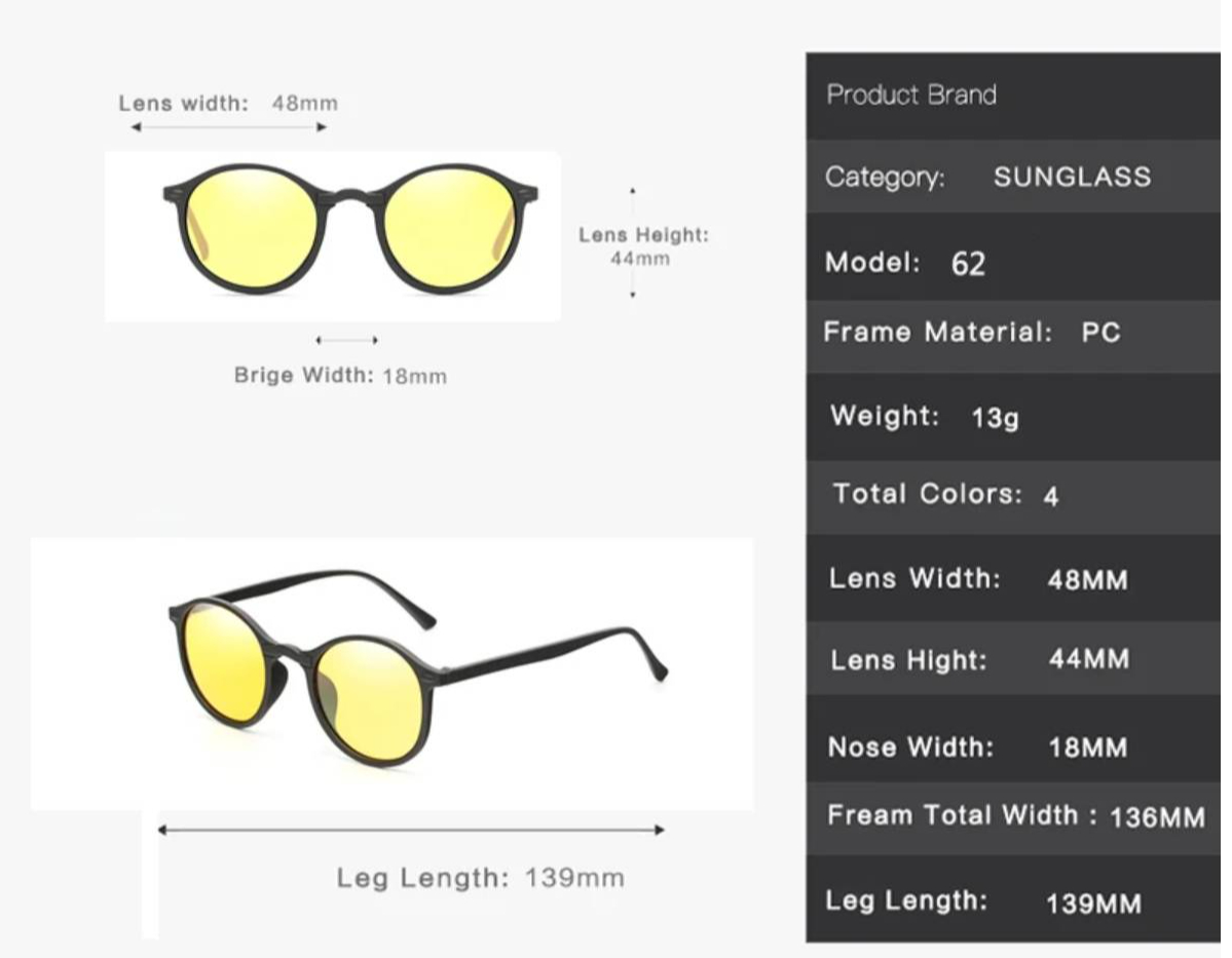 V noci sa ľudskému oku zreničky viac rozširujú a preto sú oči háklivejšie na protiidúce svetlá. Okuliare na šoférovanie obsahujú žlté šošovky, ktoré pohlcujú svetlo protiidúcich automobilov, zvyšujú celkovú viditeľnosť v nejasných podmienkach a zároveň odstraňujú únavu očí. S týmito skvelými okuliarmi Vás nebude rušiť svetlo iných automobilov a šoférovanie nebude viac také vyčerpávajúce.