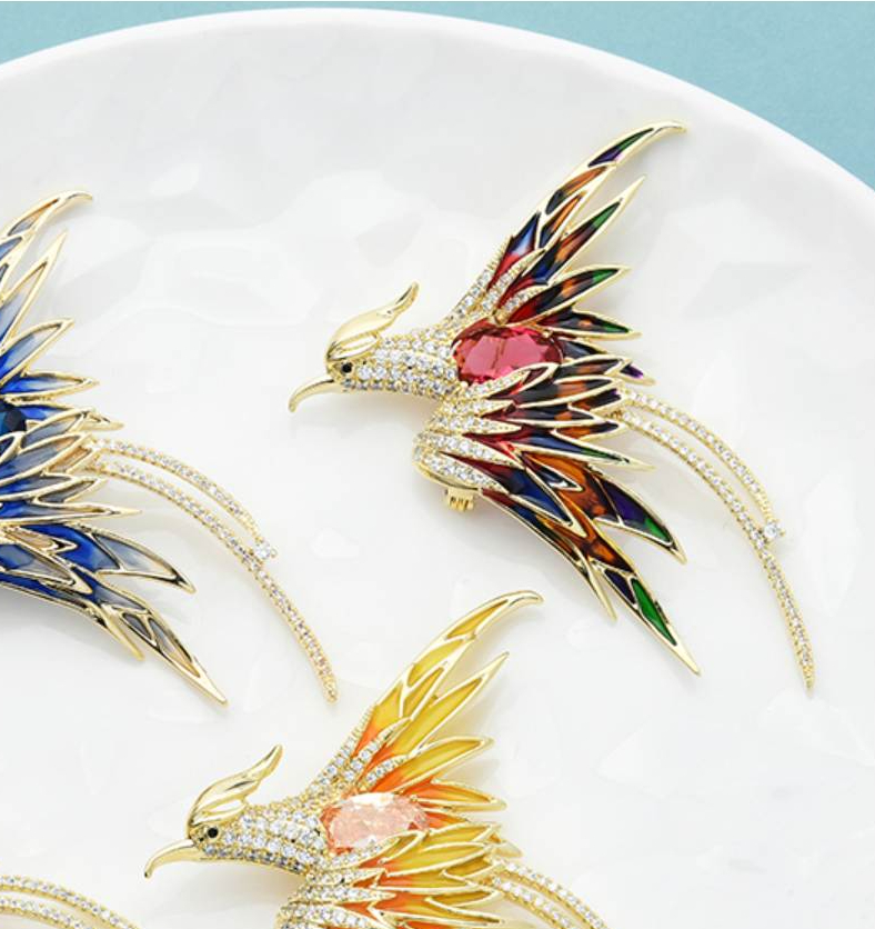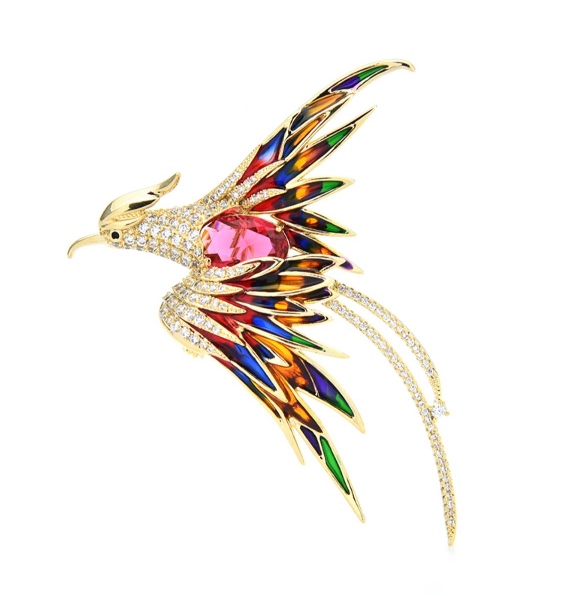 Prepracovaná brošňa na šaty v tvare Fénixa