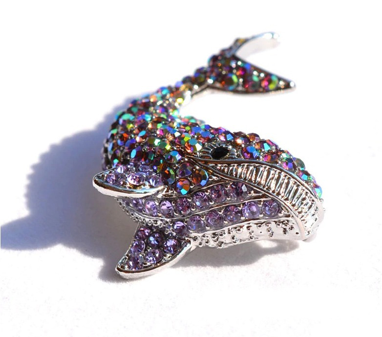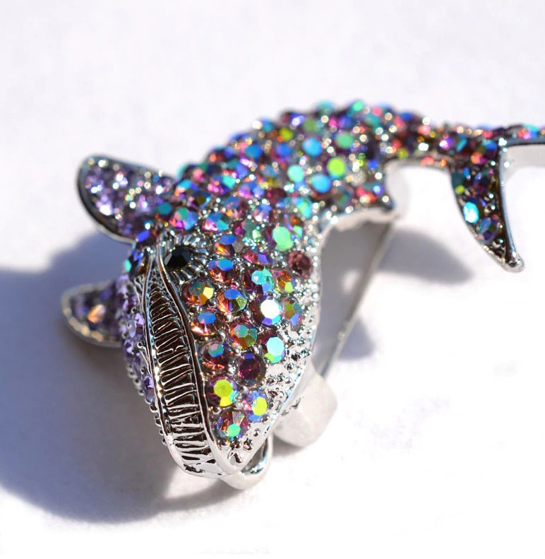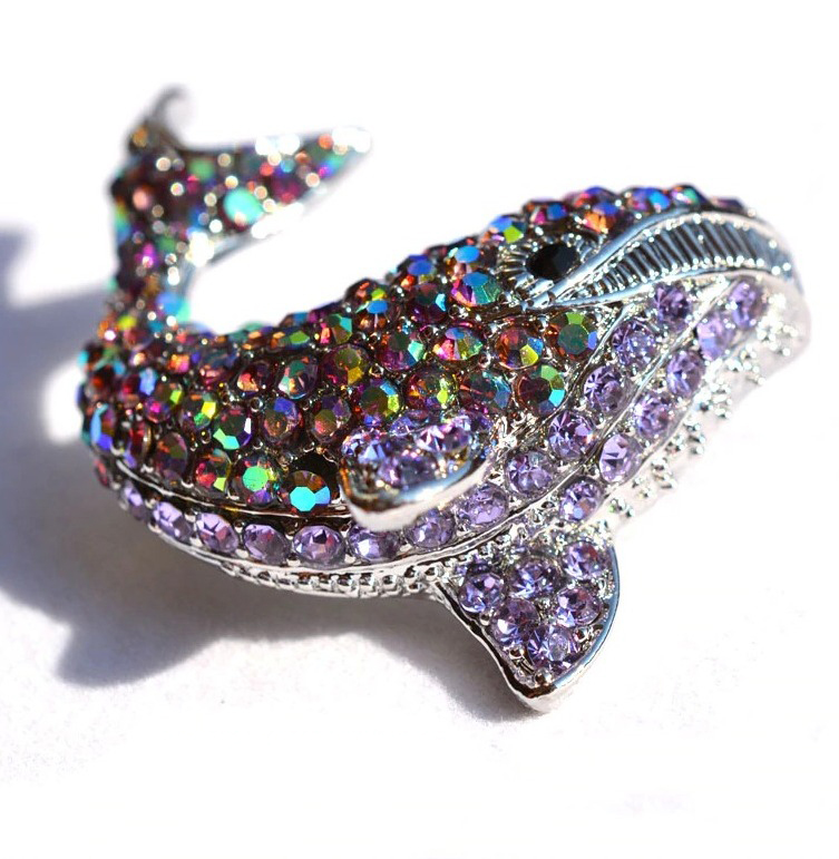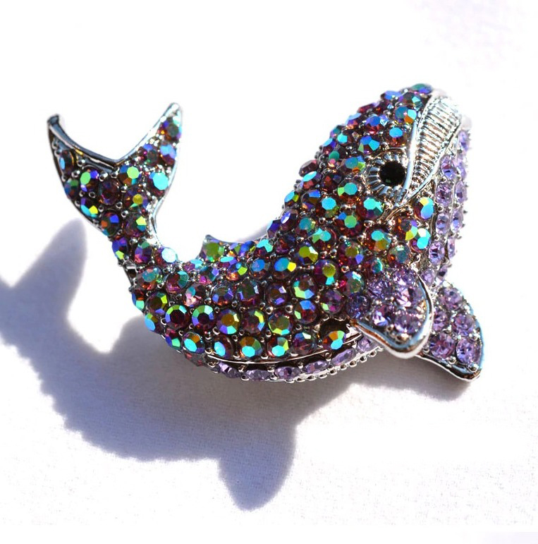 Prepracovaná brošňa na šaty v tvare veľryby z malých kryštálikov