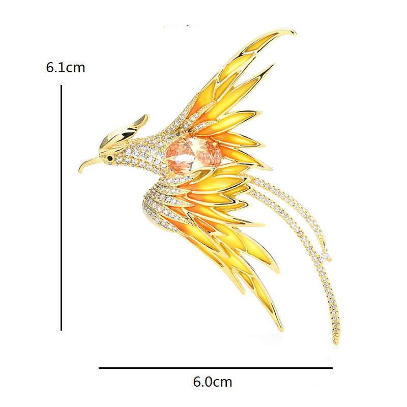 Prepracovaná brošňa na šaty v tvare zlatého Fénixa