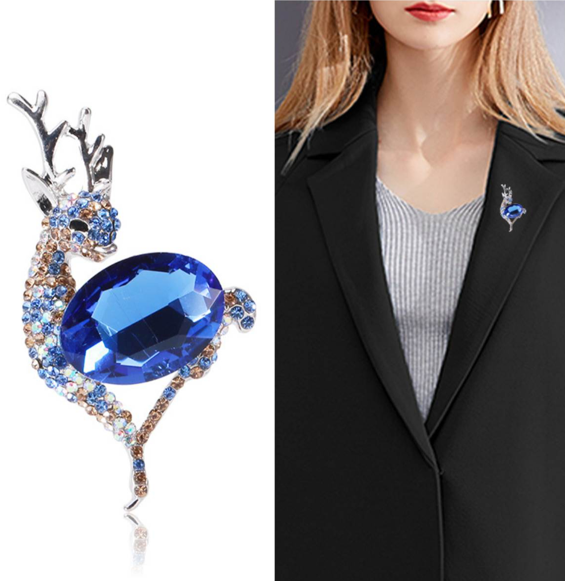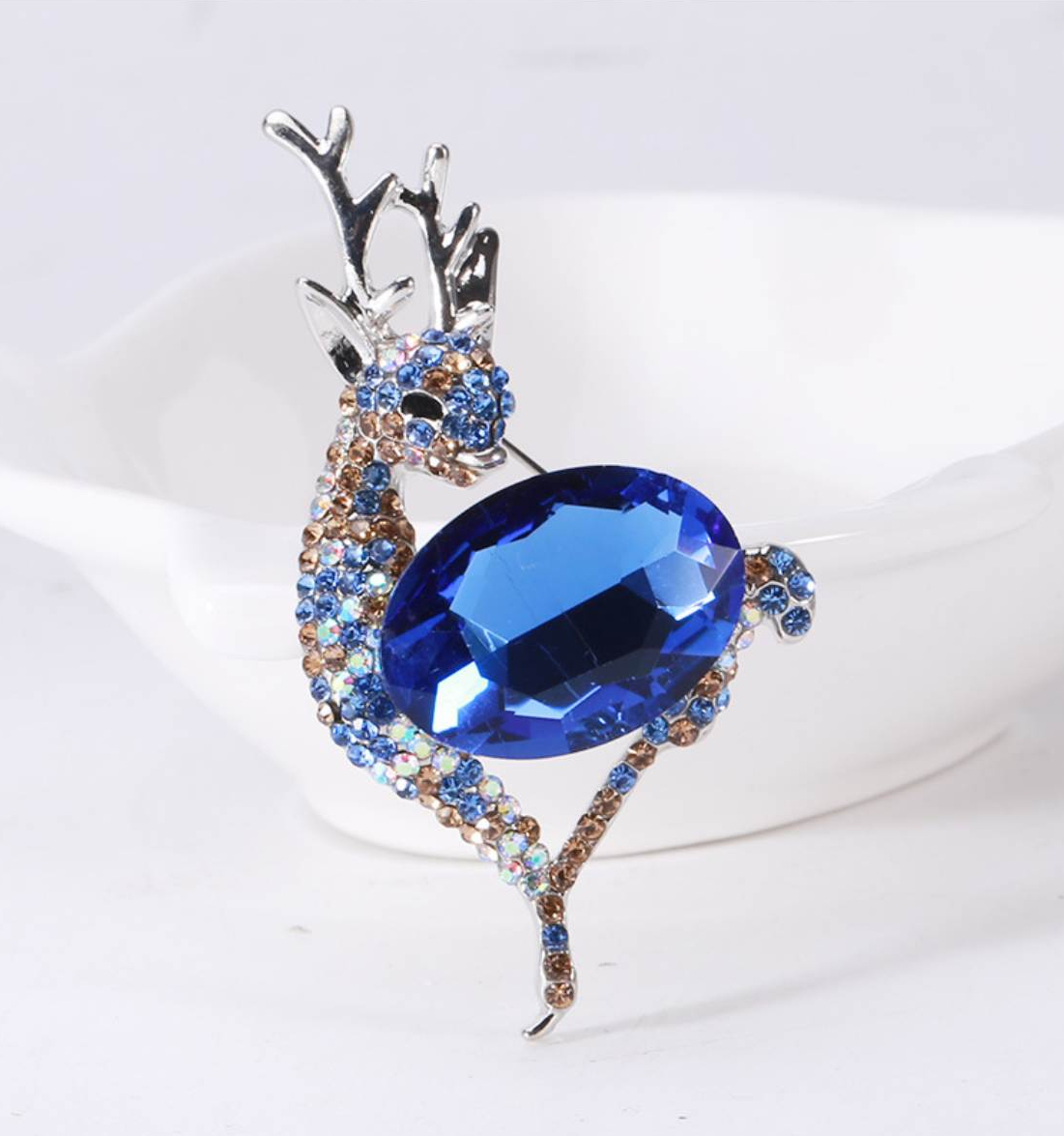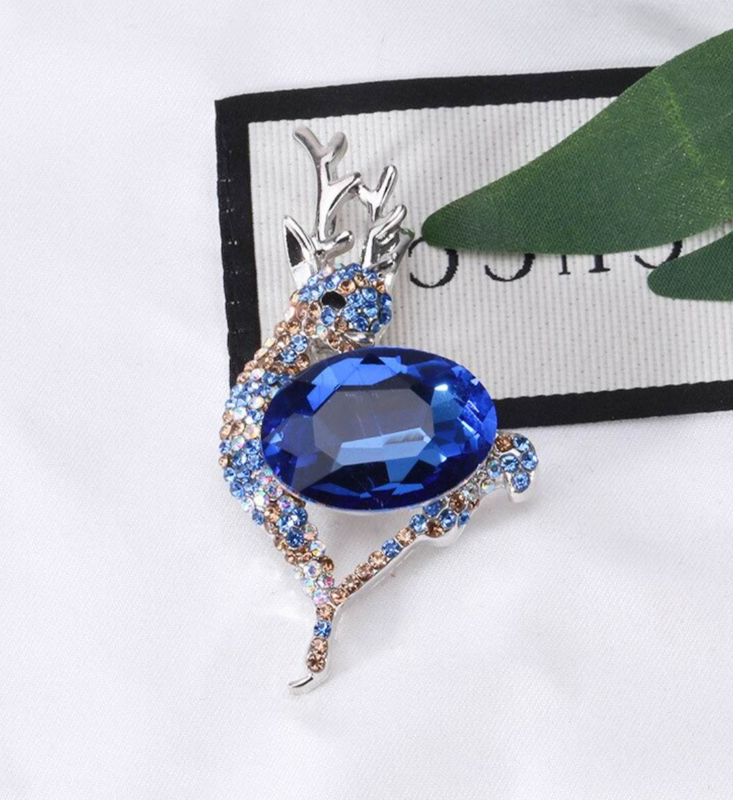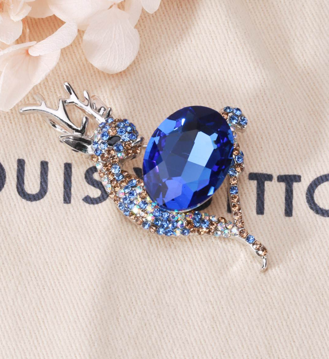 Roztomilá brošňa na šaty v podobe jelenčeka z kryštálov