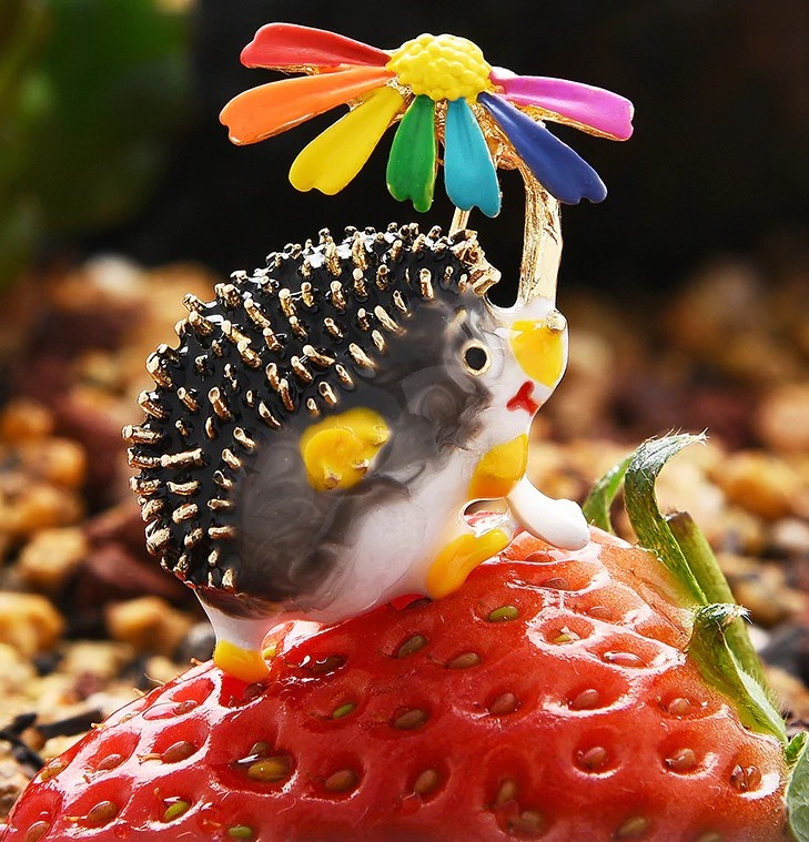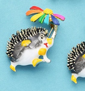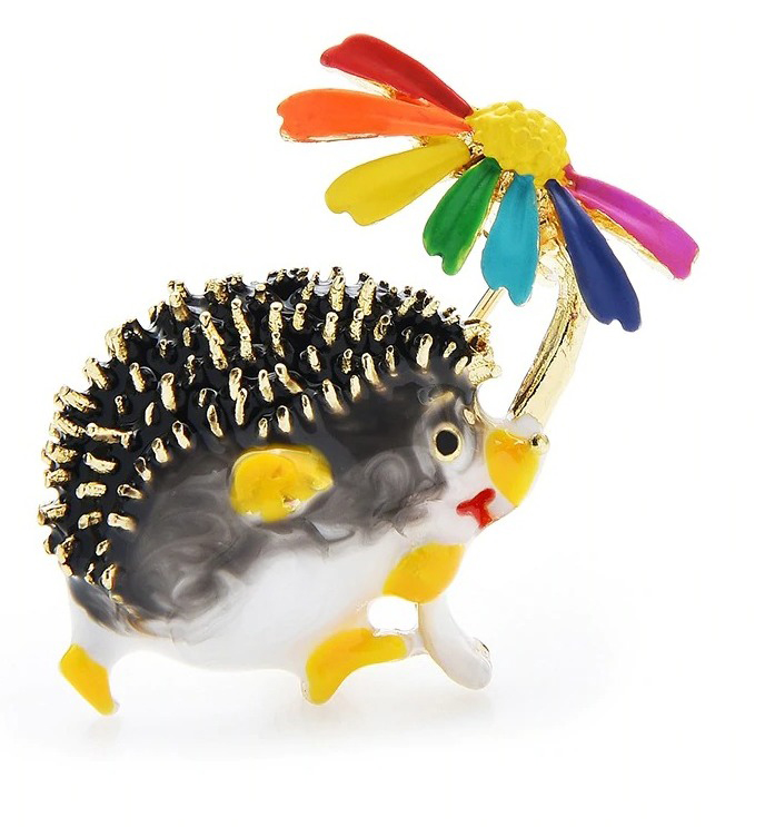 Roztomilá brošňa na šaty v tvare prepracovaného ježka so slnečníkom