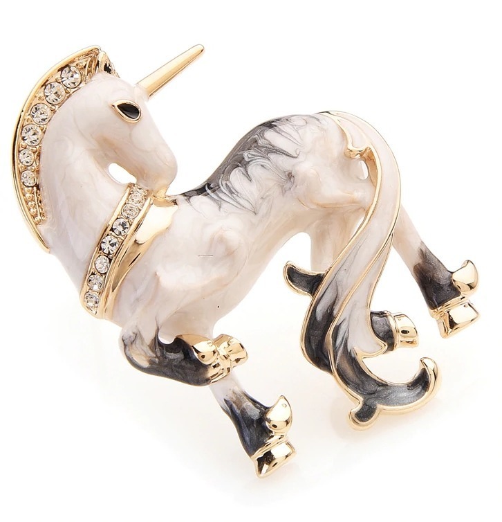 Roztomilá smaltovaná brošňa / prívesok na krk v tvare jednorožca