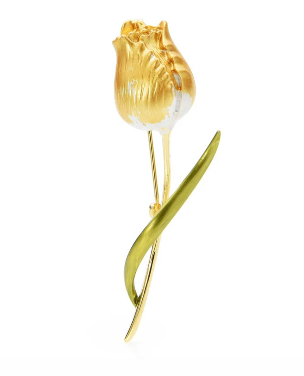 Smaltovaná brošňa na šaty v podobe žltého tulipánu