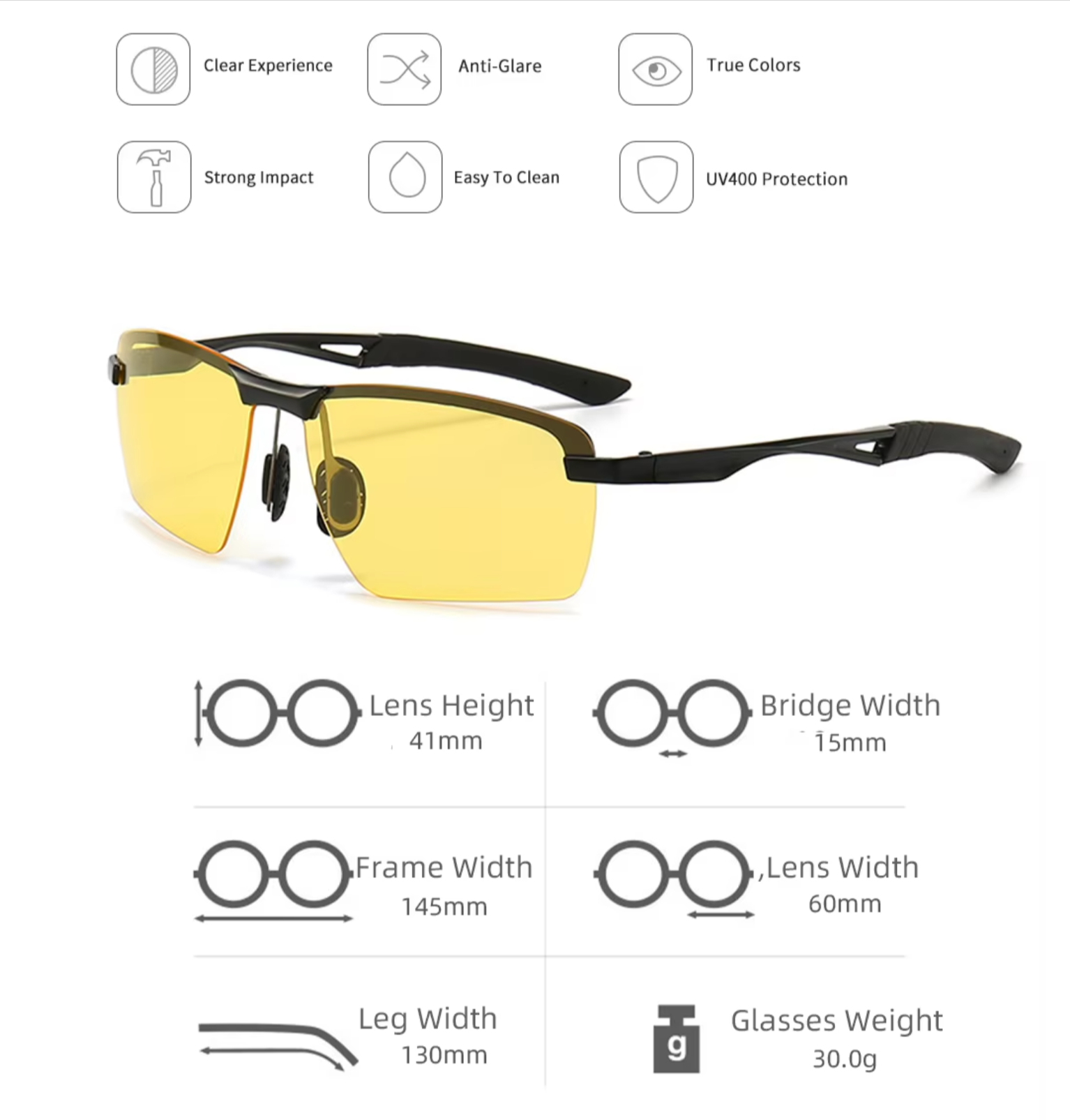 V noci sa ľudskému oku zreničky viac rozširujú a preto sú oči háklivejšie na protiidúce svetlá. Okuliare na šoférovanie obsahujú žlté šošovky, ktoré pohlcujú svetlo protiidúcich automobilov, zvyšujú celkovú viditeľnosť v nejasných podmienkach a zároveň odstraňujú únavu očí. S týmito skvelými okuliarmi Vás nebude rušiť svetlo iných automobilov a šoférovanie nebude viac také vyčerpávajúce.