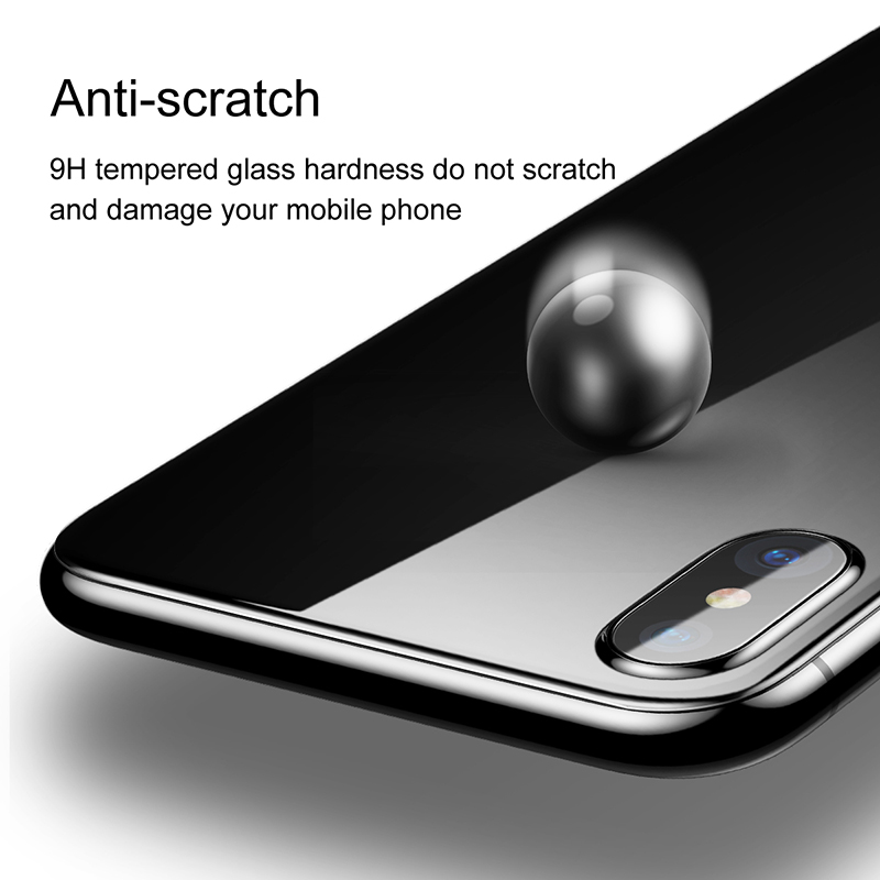 Tvrdené ochranné sklo na zadnú časť iPhonu X. Prekrýva zadnú časť iPhonu, tým chráni telefón pred poškodením a zachová jeho pôvodný stav. Ochranné sklo disponuje presnými výrezmi pre zadnú kameru. Ochranné sklo sa jednoducho lepí, samozrejmosťou sú pribalené pomôcky na očistenie displeja.