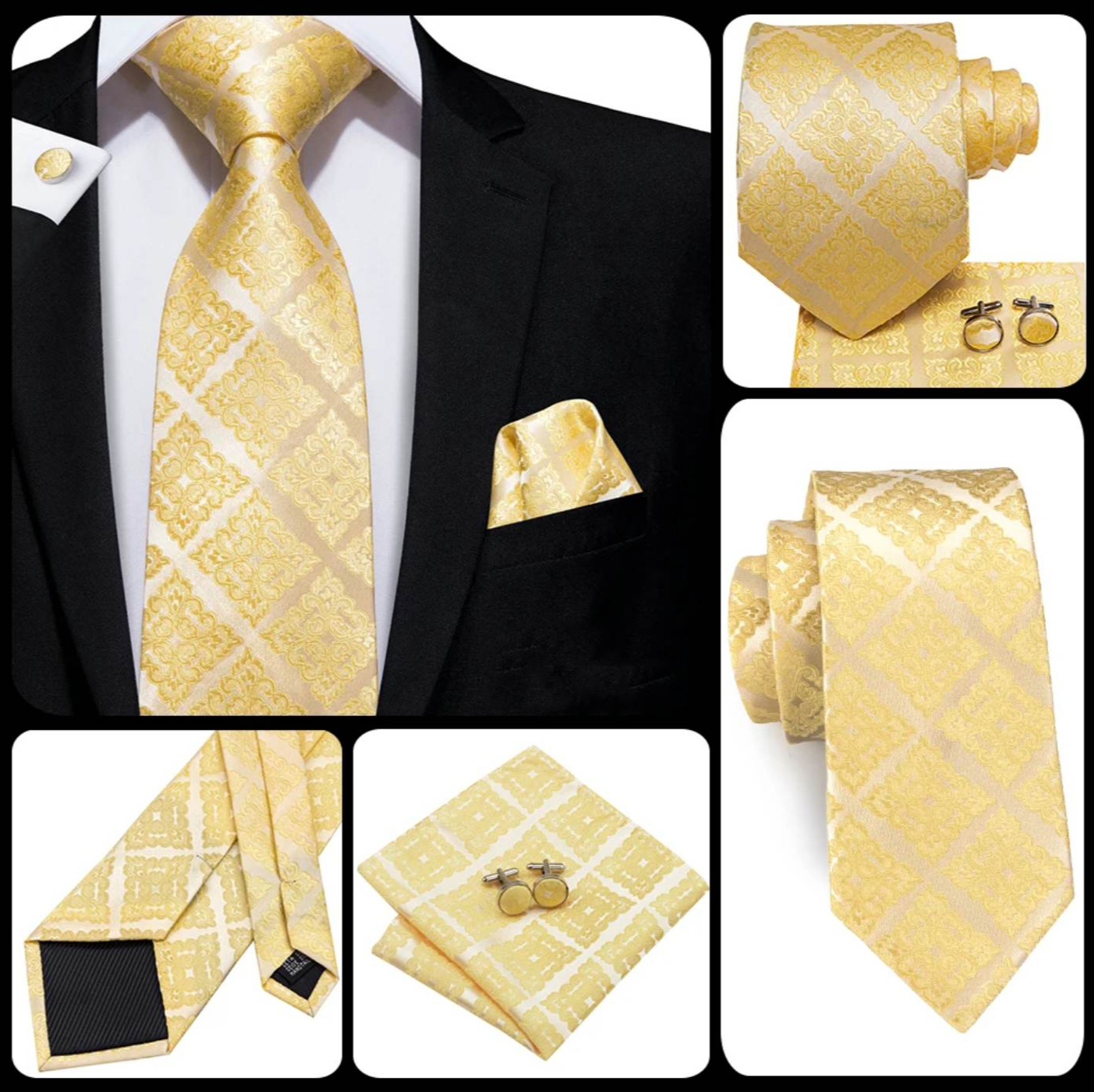 Luxusná kravata je doplnkom Vašej osobnosti. Bude vám slúžiť pri každodennom nosení alebo pri sviatočnej príležitosti. Dodajte svojmu oblečeniu originalitu a štýl. Celý set je zľadený a má jednotný motív a vzor. Vďaka setu je možné dokonale osviežiť pánsky oblek na akúkoľvek udalosť.